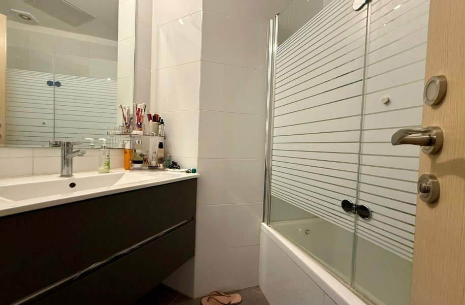 The apartment has central air conditioning, "unkers", electric water heater, Decoheat, underground parking.